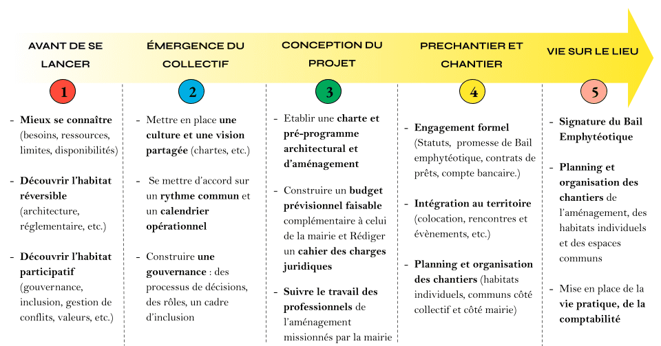 Si certains futurs habitants ont déjà leur habitat (par exemple une tiny house), la commune étudiera la possibilité de trouver des opportunités d'installation temporaire en attendant la fin des travaux d'aménagement.