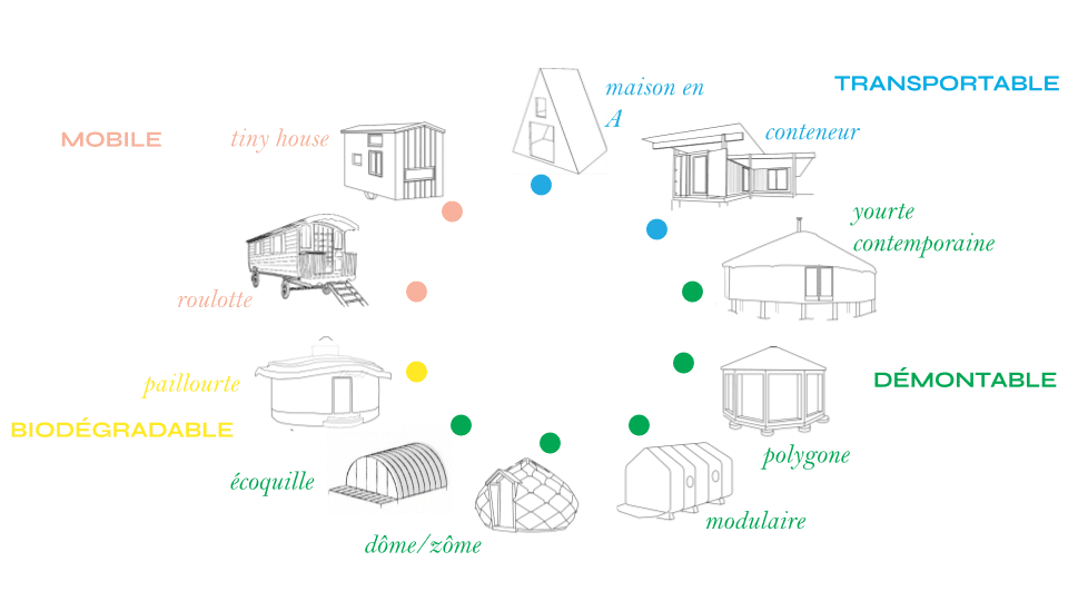 Il est important de noter que l'habitat doit pouvoir être démonté, déplacé ou composté en cas de départ, notamment pour le cas où il n'y aurait pas d'accord entre un nouvel arrivant, le collectif et la personne en partance.