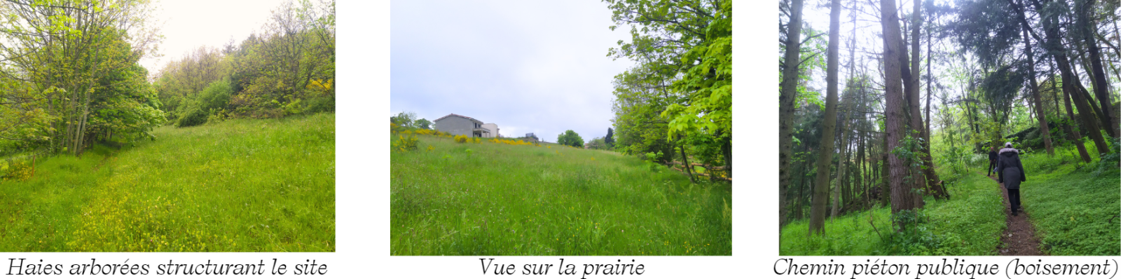 Le terrain est actuellement occupé par des espaces de prairies et est délimité :