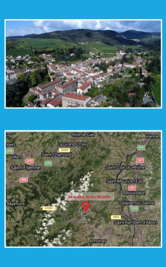 📍Localisation : St Julien Molin Molette (Loire) à 20 min de route d'Annonay et à 45 min de St-Etienne - 1140 habitants - au coeur du Parc Naturel Régional du Pilat